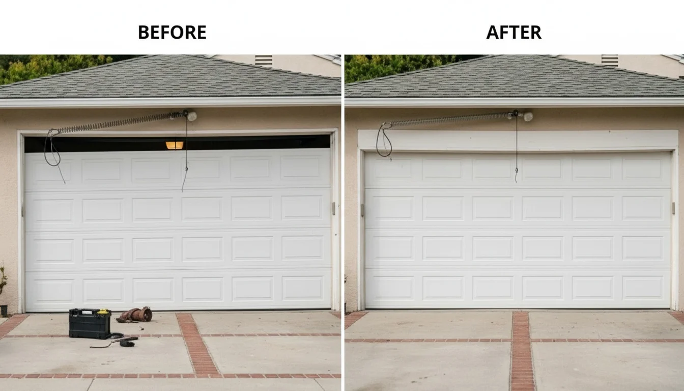 A garage door stopped operating due to a broken spring and track tension issue. We completed a same-day repair, restored smooth operation within two hours, and helped the homeowner avoid a full door replacement.
